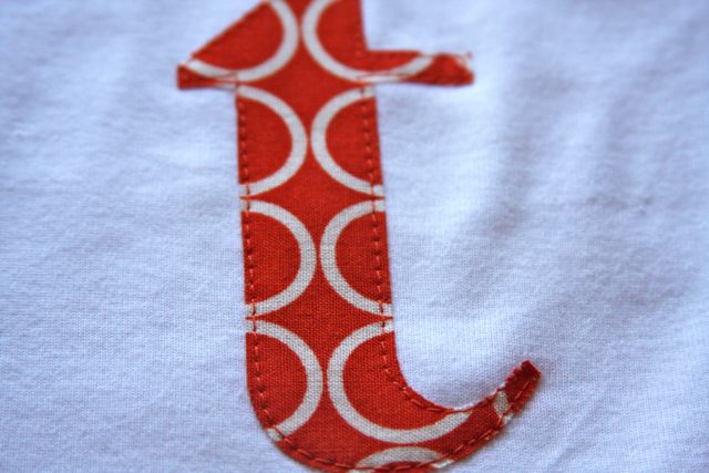 This was one of my baby shower gifts for my friend (does the fabric look familiar). The process is very similar to my heart applique shirt and my knee patches.